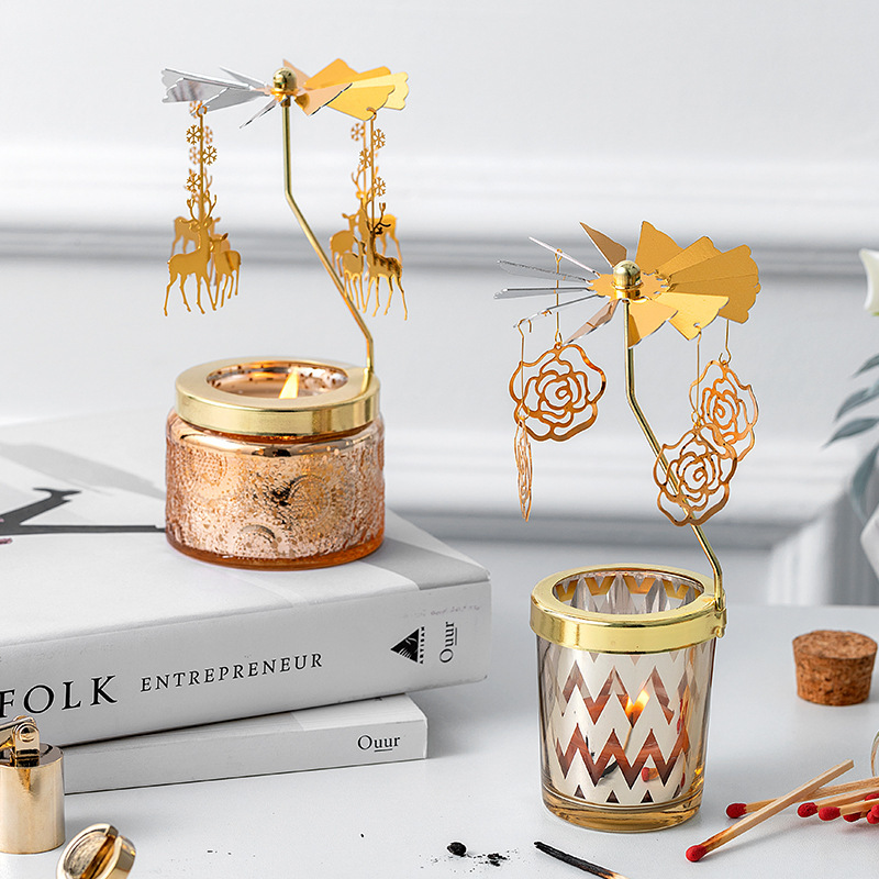 创意手工香薰蜡烛套装高级感家用浮雕旋转香氛蜡烛灯生日礼物 - 三度空间精品摆件工厂直销