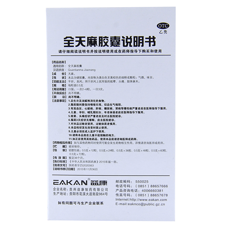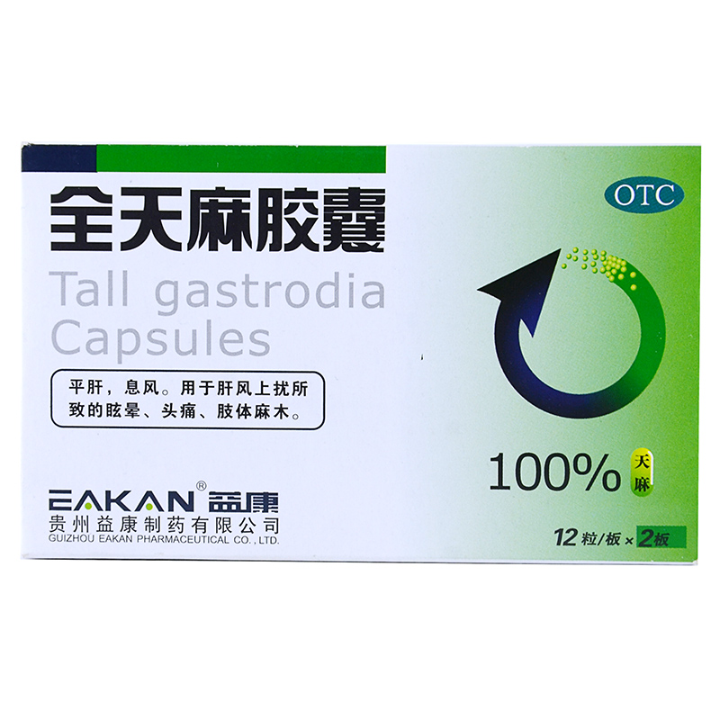 益康 全天麻胶囊 0.5g*24粒/盒 平肝息风用于肝风上扰所致的眩晕 - 都会好大药房旗舰店