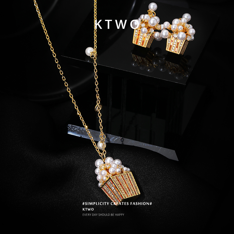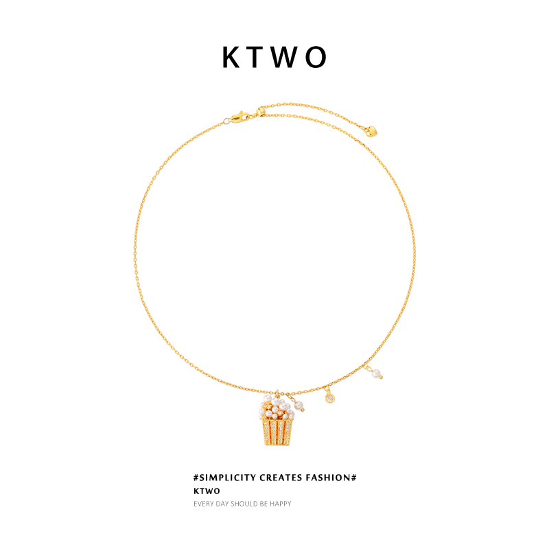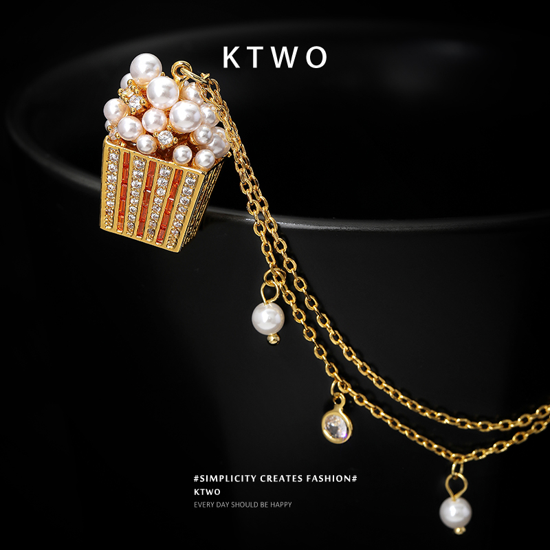 2025新款珍珠吊坠毛衫项链女小众轻奢爆米花设计k金色时尚锁骨链 - ktwo旗舰店