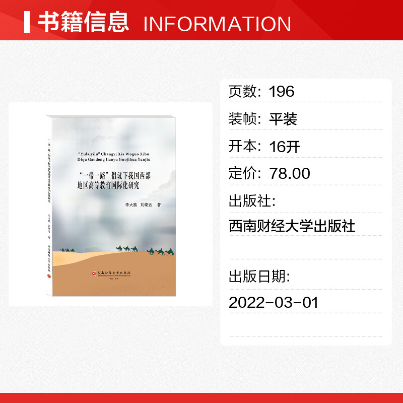 “一带一路”倡议下我国西部地区高等教育国际化研究 李大鹏,刘晓远 著 育儿其他文教 新华书店正版图书籍 西南财经大学出版社 - 新华在线图书专营店
