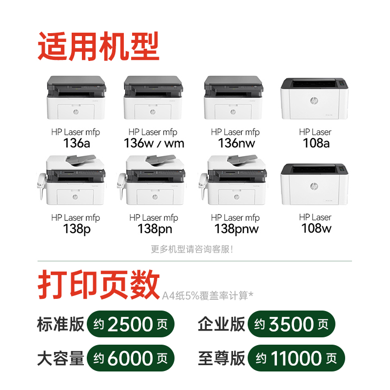 适用惠普136w硒鼓hp110A 108w/a 136a/nw/wm打印机墨盒w1110a墨粉盒laser mfp138p/pn/pnw一体机硒鼓鼓芯碳粉 - 泰森办公旗舰店