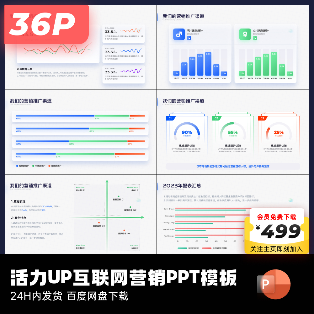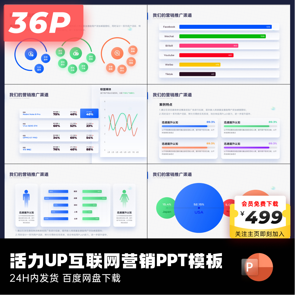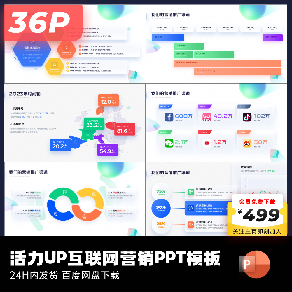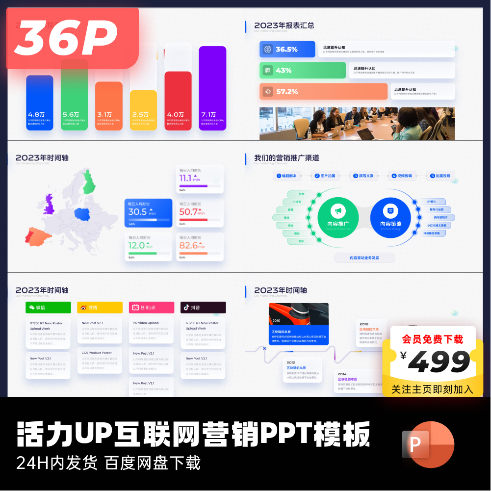 36页原创活力UP互联网营销主题PPT模板互联网大厂ppt设计keypoint