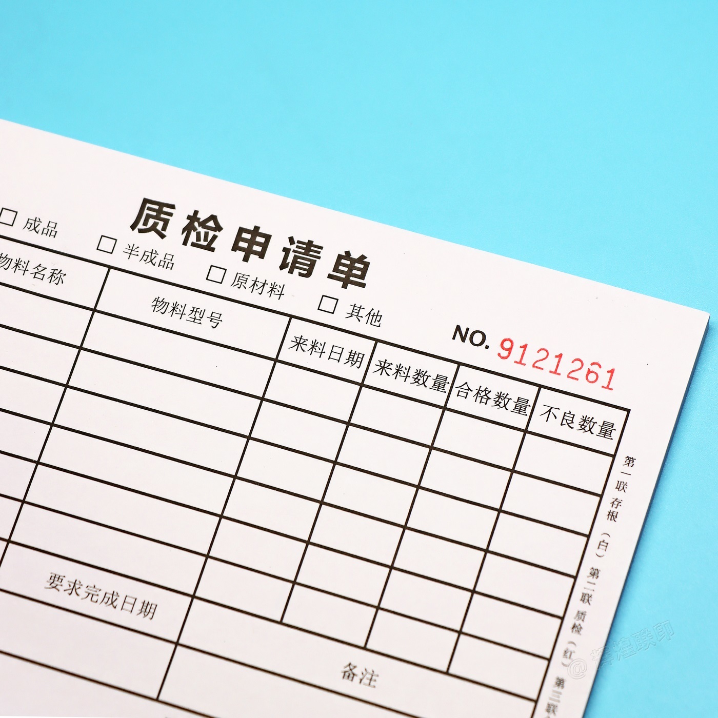 二三联供应商来料原材料质检申请单订做产品质量检验申请表送检单 - 辉煌联印
