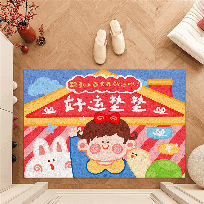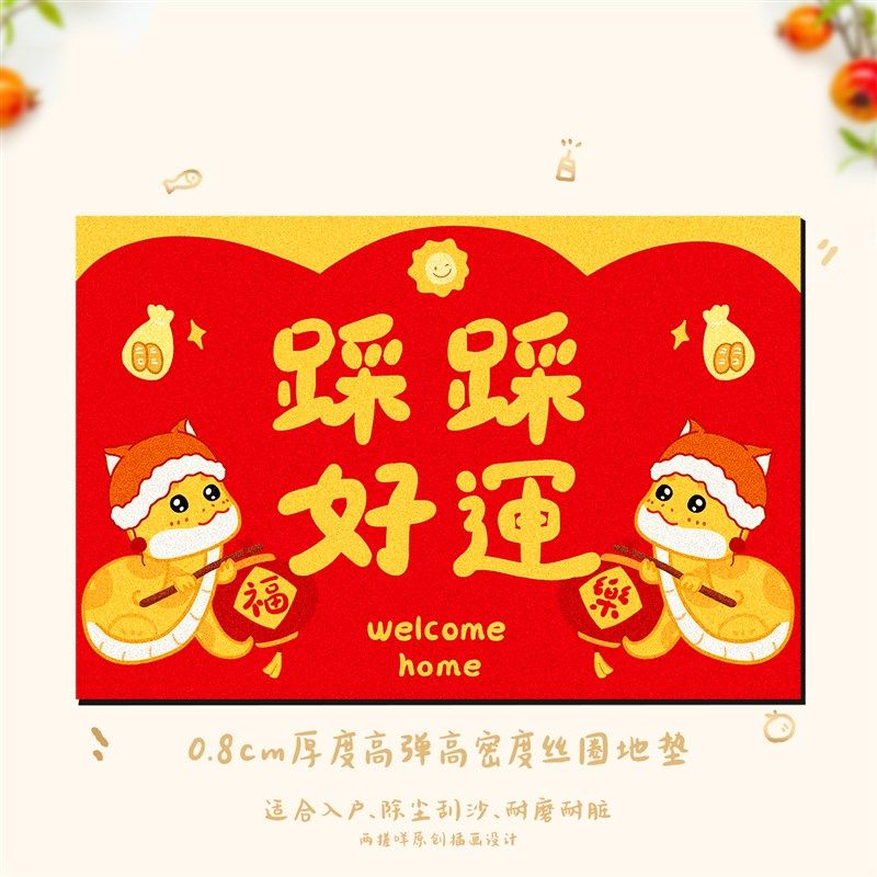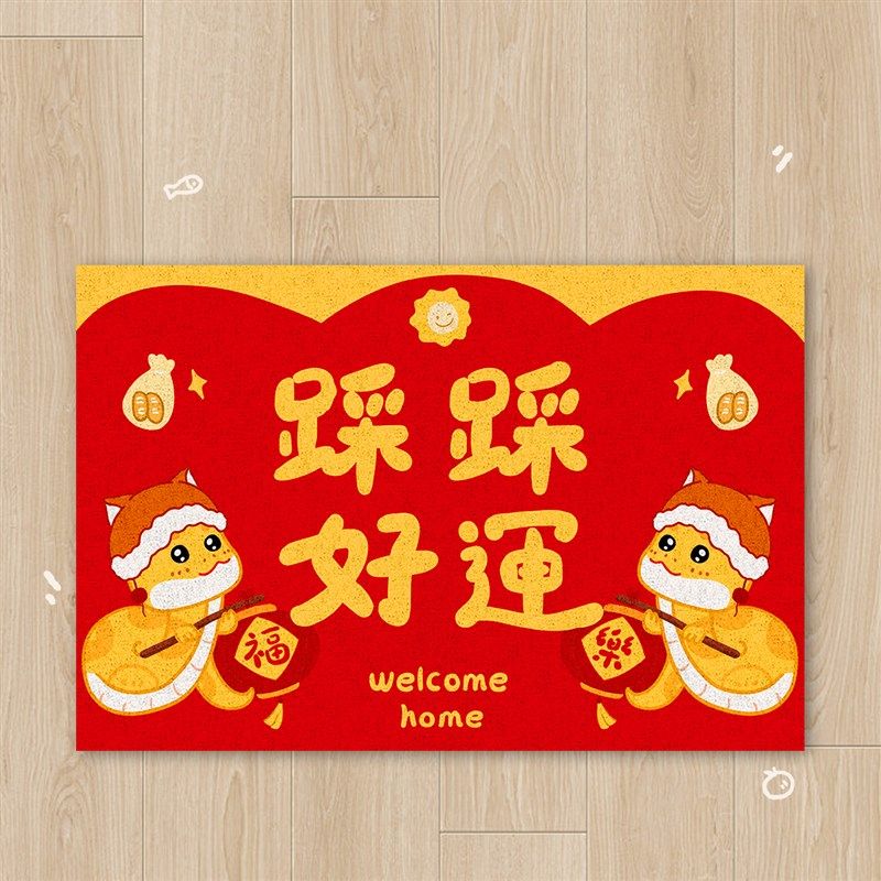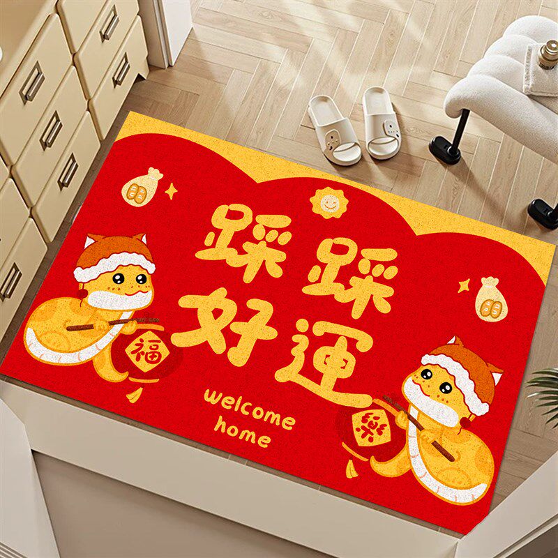 2025蛇年入户地毯耐脏红色客厅玄关丝圈地垫喜庆可爱卧室地毯 - 洋勇生活用品馆2的小店53
