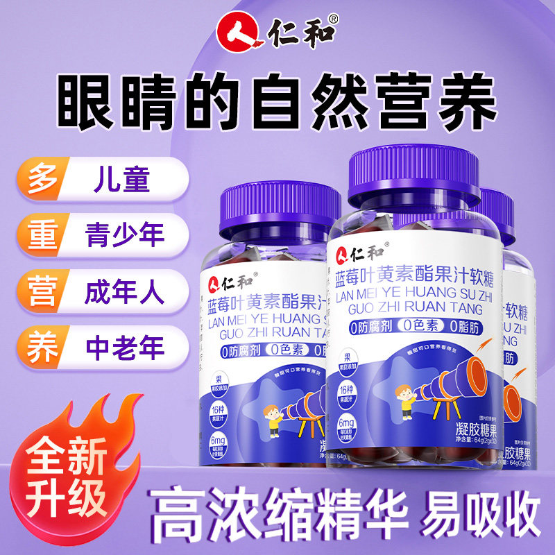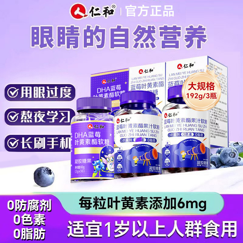 仁和叶黄素蓝莓味酯软糖片正品官方儿童成人非专利进口旗舰店