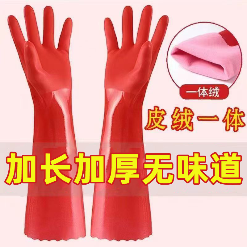洗碗手套加绒加厚保暖款男女厨房耐用橡胶乳胶皮洗衣加长手套家务 - 昭阳手套店