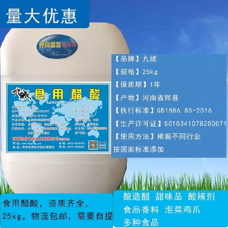 冰醋酸食品级99.8%浓度食品级冰乙酸醋酸鱼池除碱泡菜消毒50斤 - 升格生物连锁店