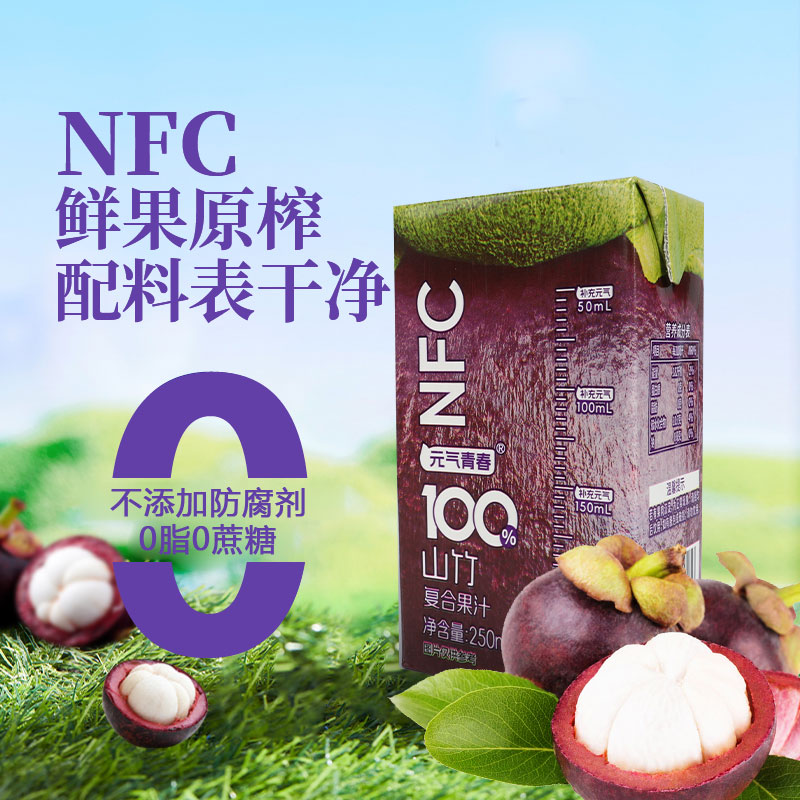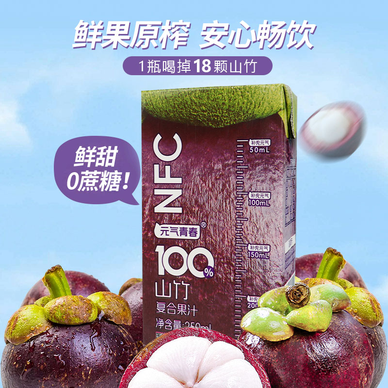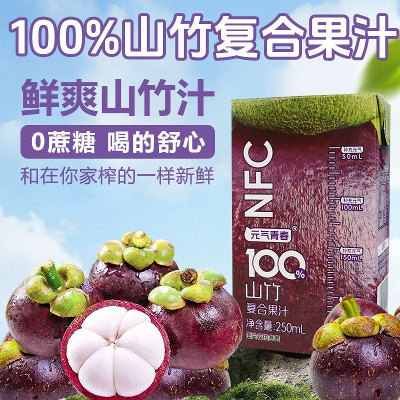 【厂家直销】100%山竹复合果汁饮料250ml*10盒0蔗糖0防腐剂0色素