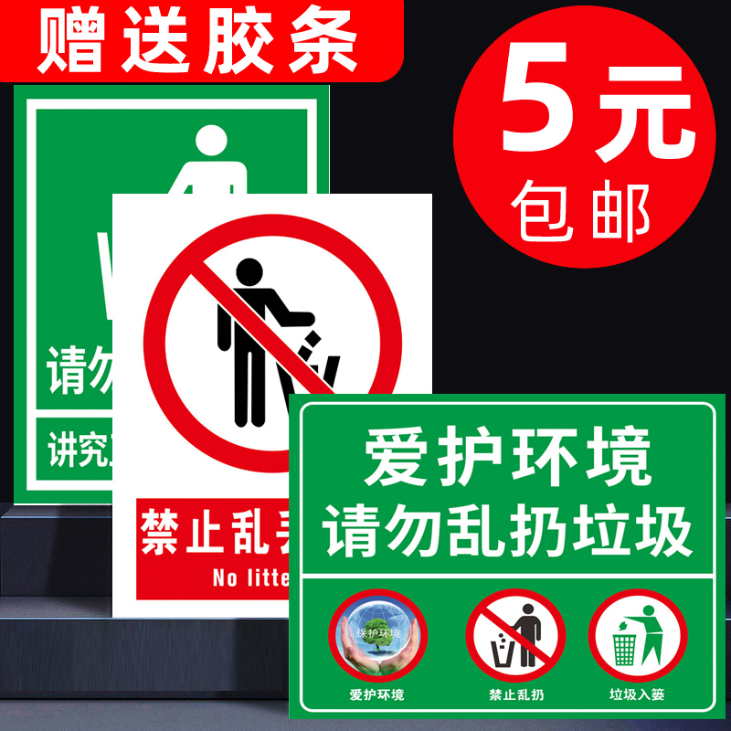 禁止乱扔垃圾警示牌请勿乱扔垃圾提示牌严禁乱丢垃圾标识牌此处禁止倒垃圾指示牌爱护环境监控区域不要乱扔牌