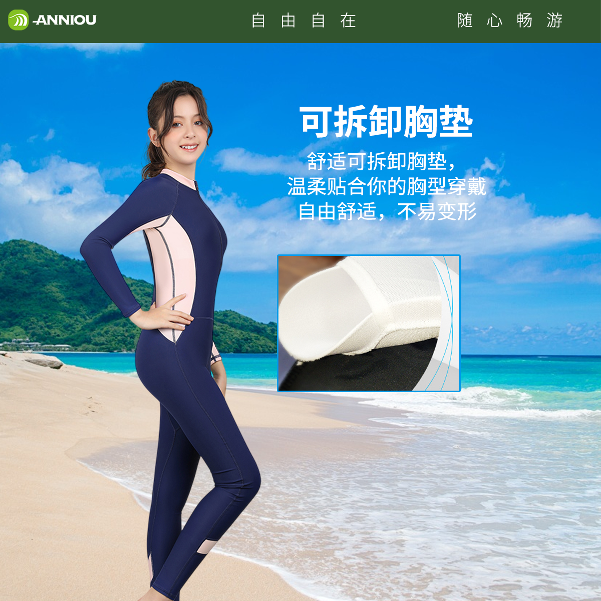 安尼欧儿童长袖泳衣女童连体潜水服全身防晒中大童少女孩训练服
