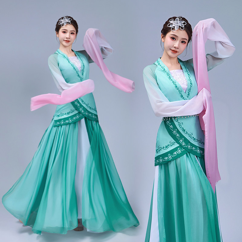 原版踏春行同款舞蹈演出服采薇踏歌古典舞水袖汉服舞台演出服儿童