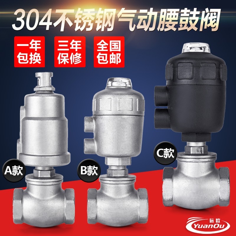 304不锈钢气动水阀腰鼓阀T型角座阀气动截止切断阀干燥机水阀重型 - 山孟素商贸