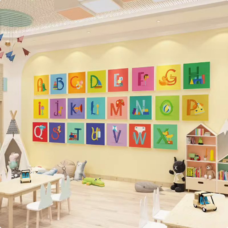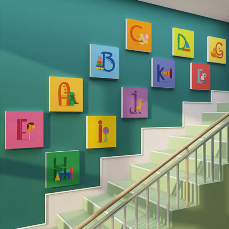 幼儿园楼梯墙面装饰环创主题成品托管班英语角教室文化布置字母贴
