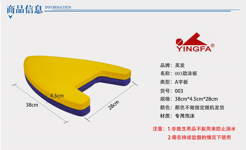 英发加大浮力板训练打退夹腿游泳板 A字打水板浮板儿童专业泡沫板 - 英发泳衣泳具