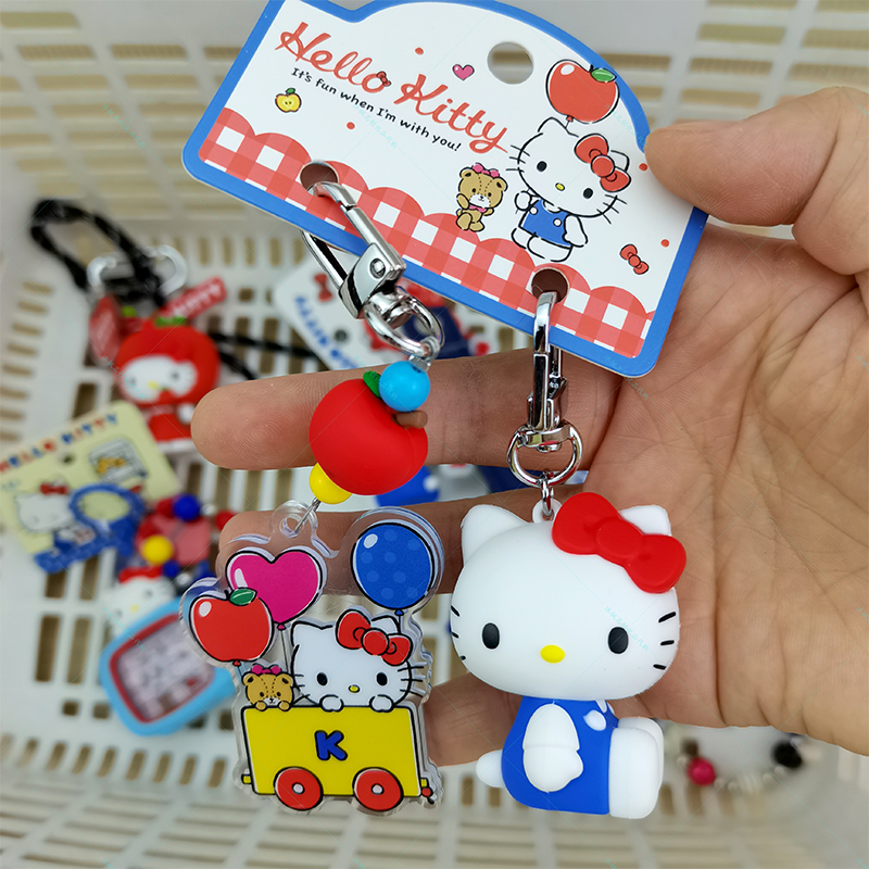 正版三丽鸥HelloKitty凯蒂猫珠链苹果钥匙扣可爱牛仔小挂件少女心