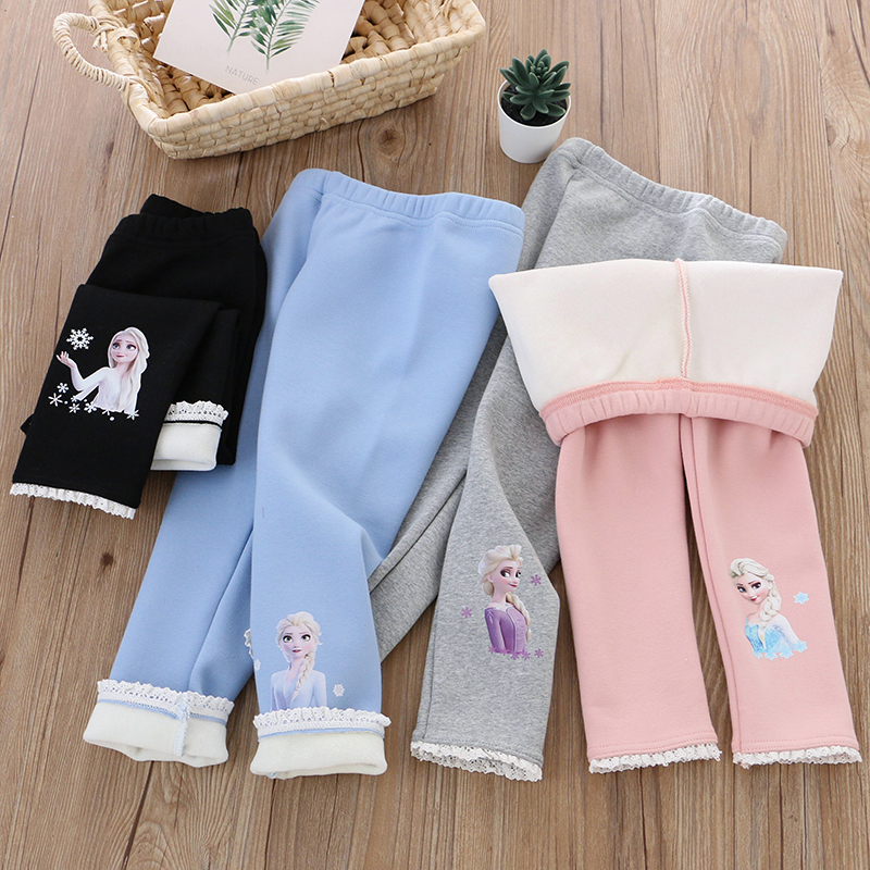 女童纯棉加绒一体绒秋冬保暖裤子儿童宝宝女孩卡通公主外穿打底裤 - 美琪 童装