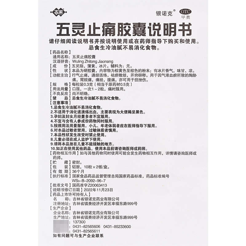 百派 五灵止痛胶囊20粒行气止痛通经活络祛瘀散结胃脘痛痛经腹痛 - 弘毅药品专营店