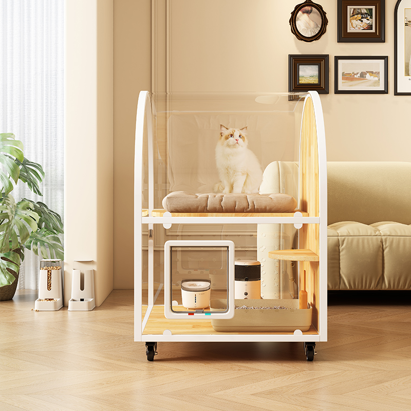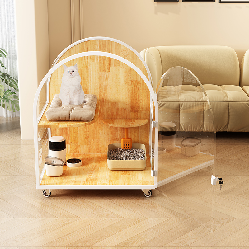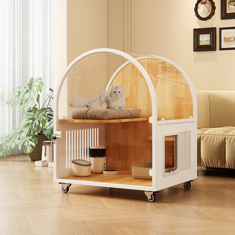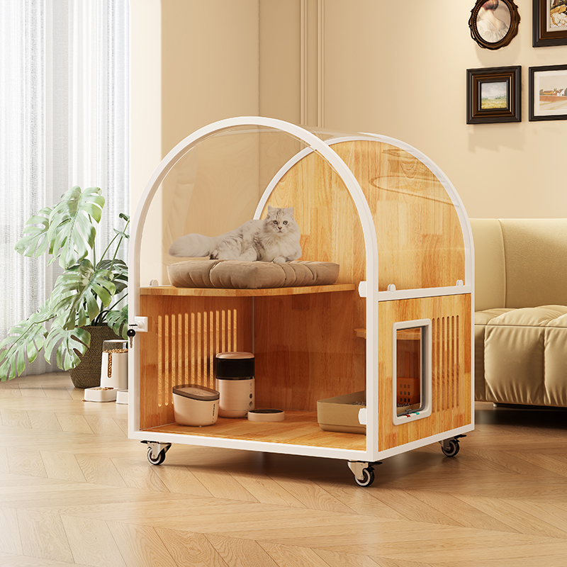狸享喵猫别墅透明拱形天空顶猫柜室内不占地猫笼实木猫笼厕所一体 - 狸享喵
