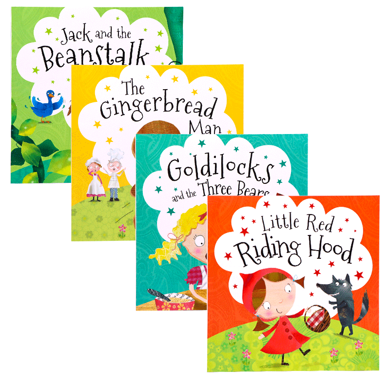 经典童话故事平装绘本4册 英文原版绘本 little red riding hood小红帽姜饼人杰克和魔豆儿童英语启蒙认知亲子睡前故事图画书