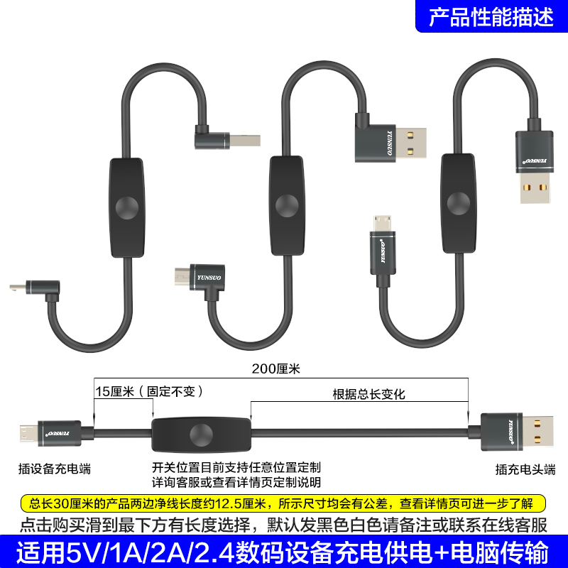 USB转安卓Micro上下弯左右弯直角数码设备加长超短开关充电数据线 - 云梭电子电气连接线