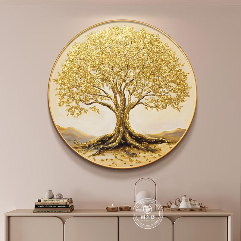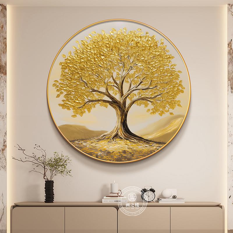 发财树入户画正对门旺运现代简约黄色摇钱树高级感圆形玄关装饰画 - 国中百货官营店