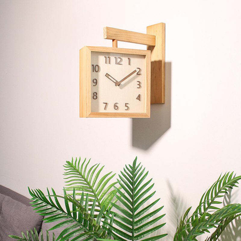 MJK钟表实木双面挂钟客厅2025新款家用时尚简约现代时钟挂墙静音 - mjk居家日用旗舰店