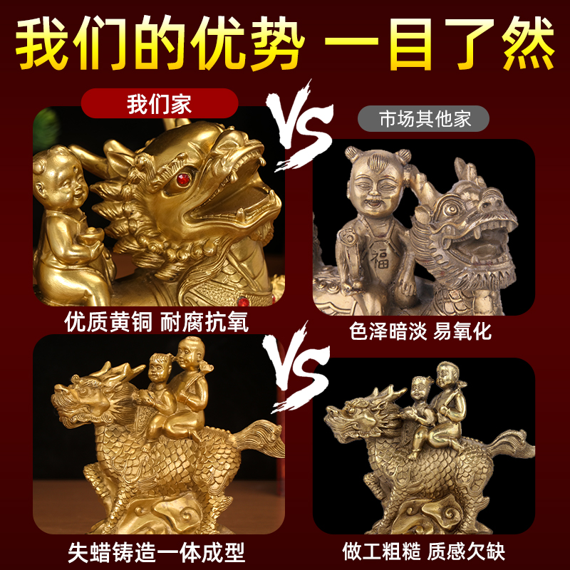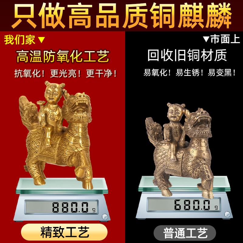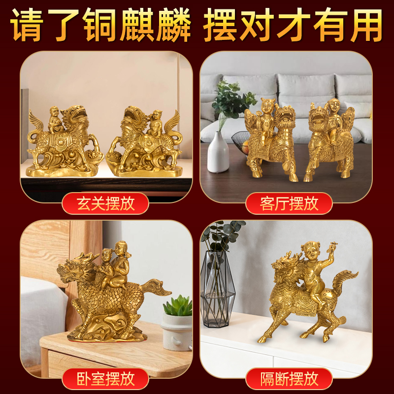 铜麒麟招财镇宅摆件一对公母纯黄铜质麒麟送子客厅玄关卧室装饰品 - 启跃旗舰店