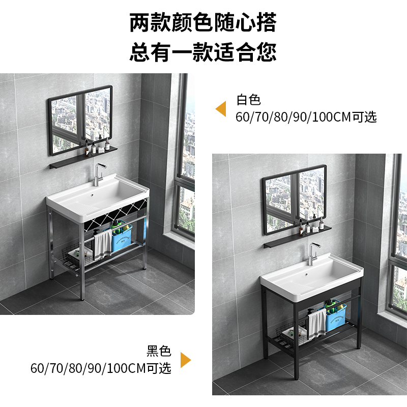 不锈钢阳台落地式洗手盆支架卫生间陶瓷洗脸盆柜组合一体盆洗衣盆 - tb029305518794