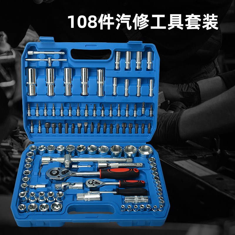 94件套汽修工具套装套筒扳手108件套汽车维修工具箱棘轮扳手组