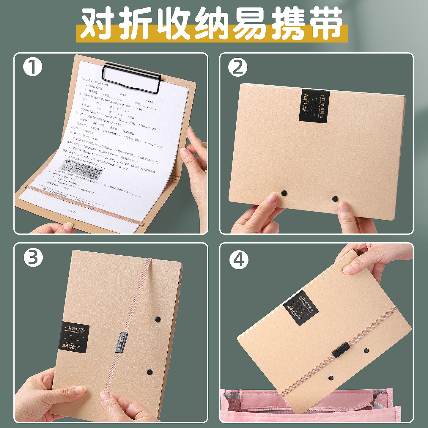 折叠文件夹夹板A5对折A4尺寸板夹档案合同资料夹孕检票据收纳学生试卷夹写字板画画垫板便携固定夹子办公用品 - 文墨堂办公专营店