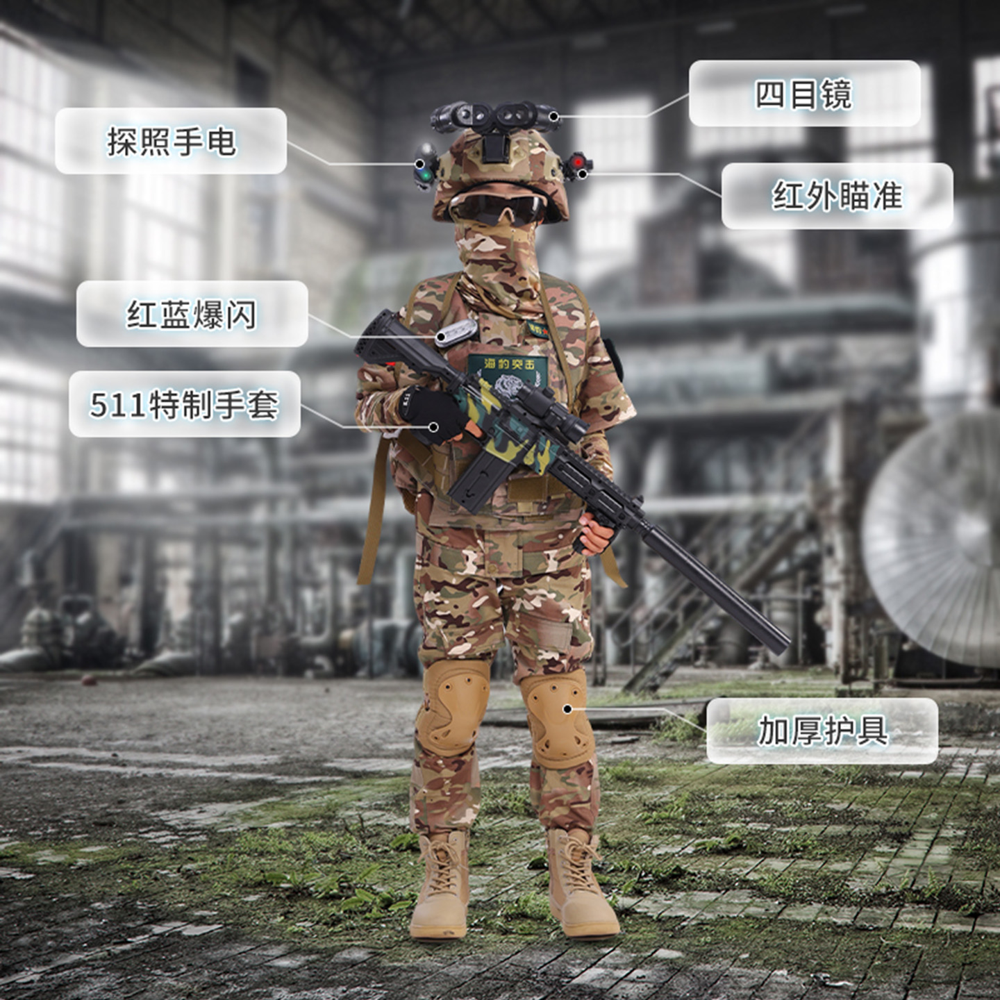 迷彩服套装儿童小警官服装运动会迷彩服套装男童特种兵角色扮演冬 - 飞马逐溪童装旗舰店