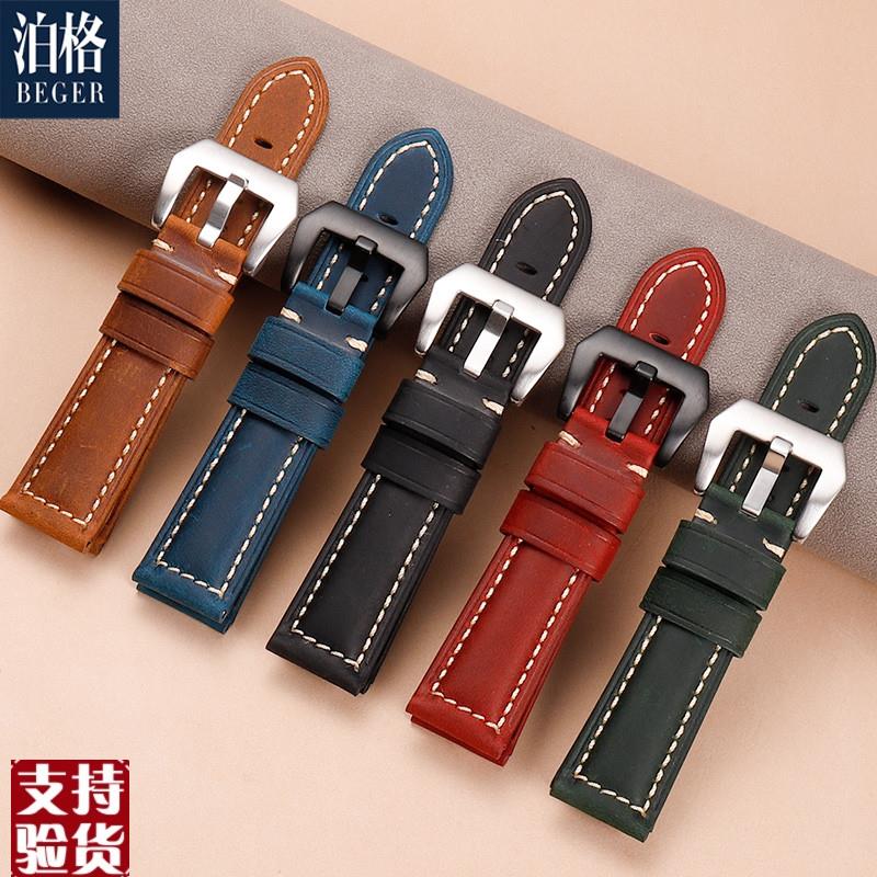 原装适配适配沛纳海手表带男胖大海庐米诺磨砂手工复古疯马皮真皮 - 喜洋洋百货企业店