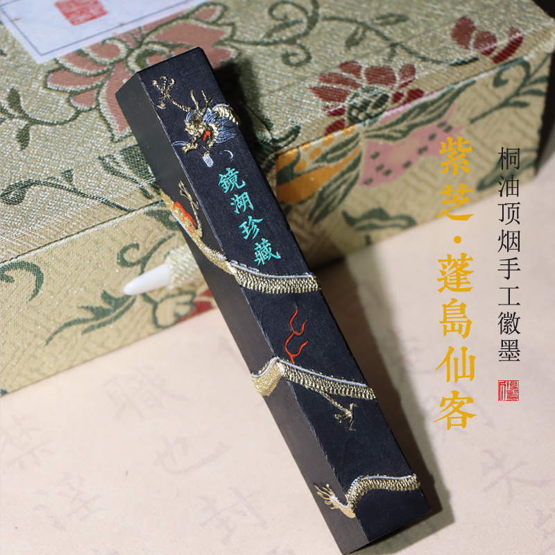 油烟墨【紫芝系列】桐油顶烟 蓬岛仙客 古法非遗手工徽墨徽州曹素功专业级别书法书画用墨墨条墨块 - 徽昌瑞旗舰店