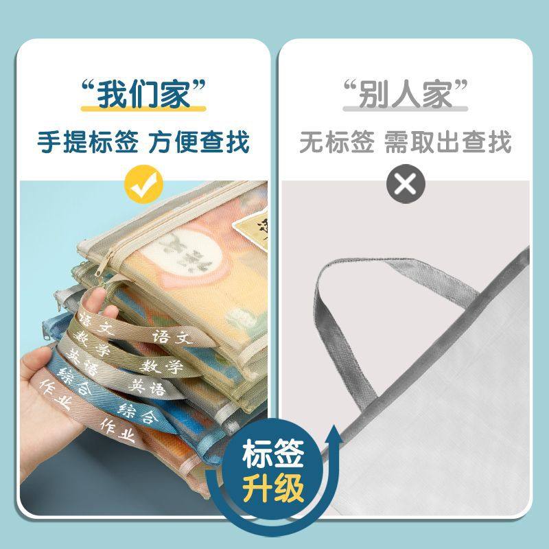 文件袋小学生双层手提科目袋分类大容量A4透明网纱试卷作业收纳袋 - 居家优品家居专营店
