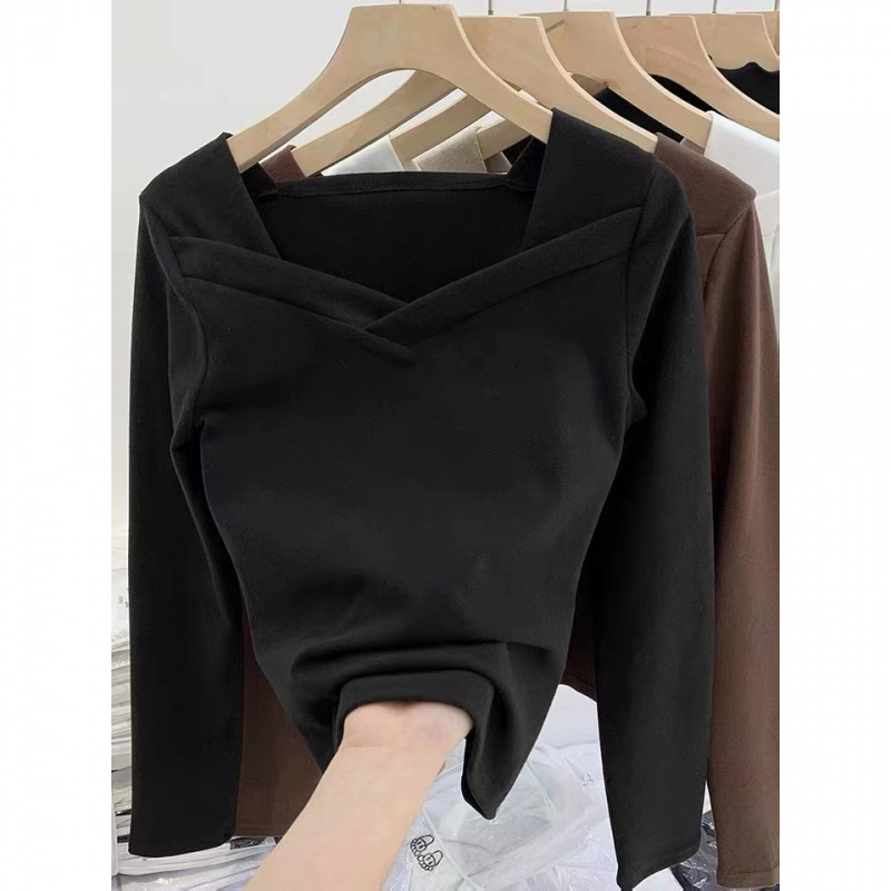 德绒打底衫女装春夏设计感小众V领加绒磨毛洋气修身简约内搭上衣 - 2018百变魔界九姑娘