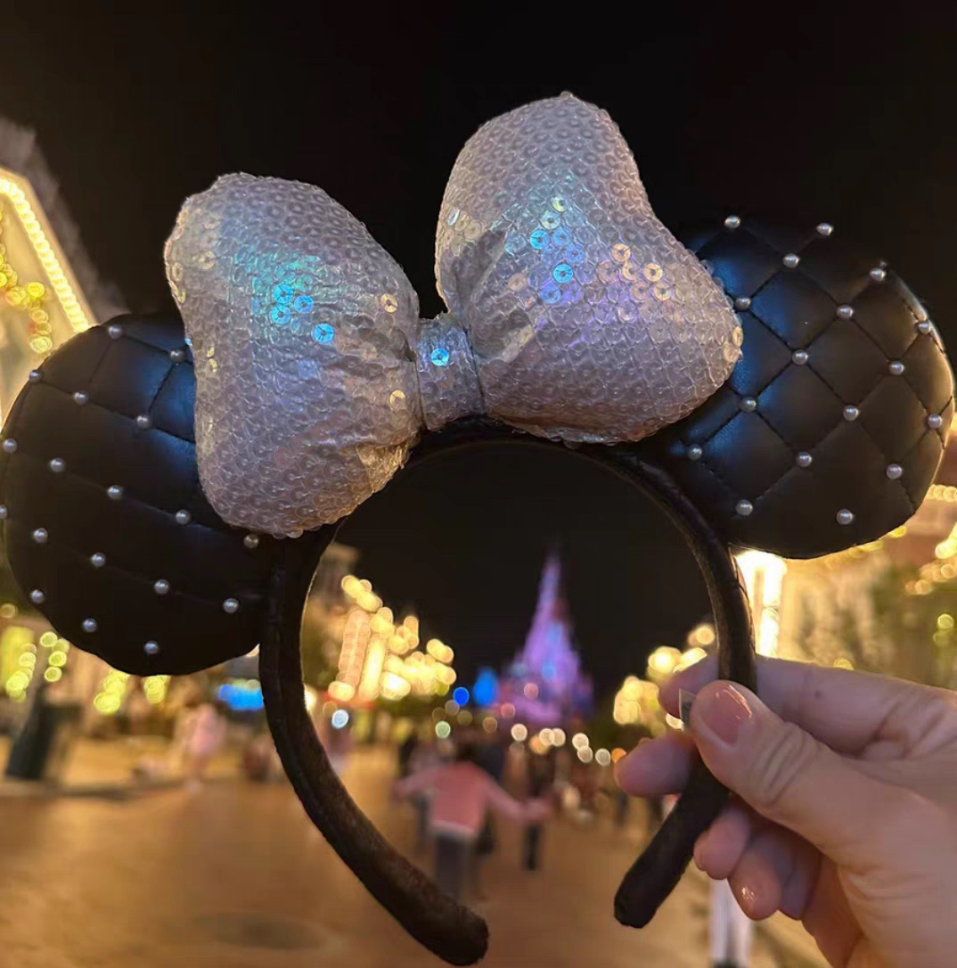 出租上海迪士尼租赁发箍香风米妮白色黑色皮质头箍卡通可爱发饰