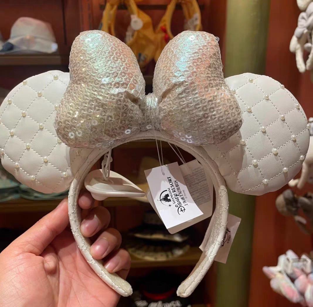 出租上海迪士尼租赁发箍香风米妮白色黑色皮质头箍卡通可爱发饰 - 小雪上迪发箍出租