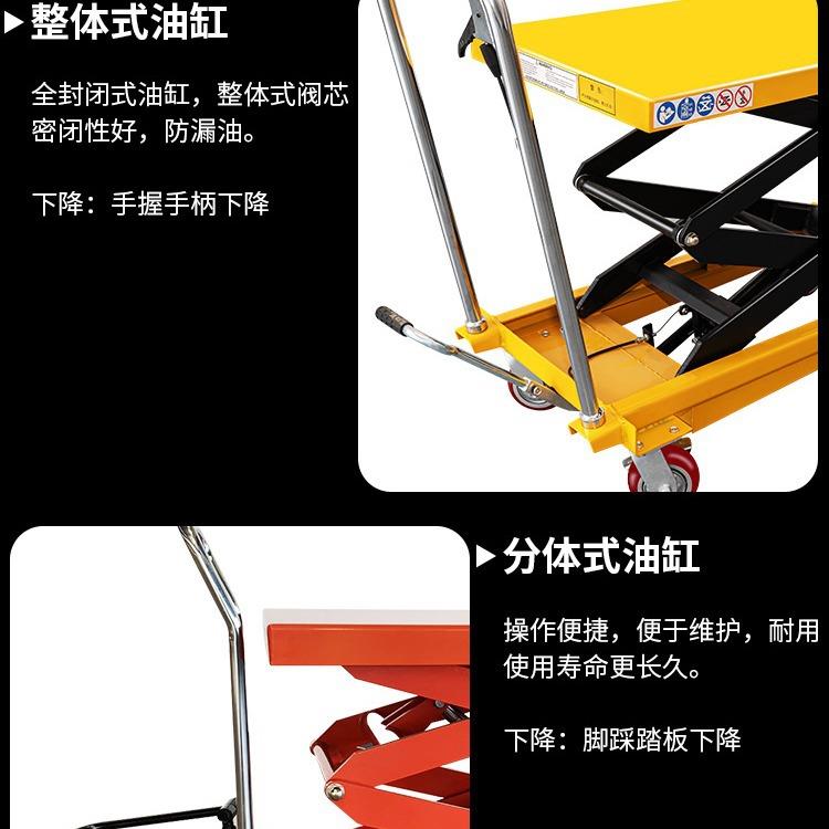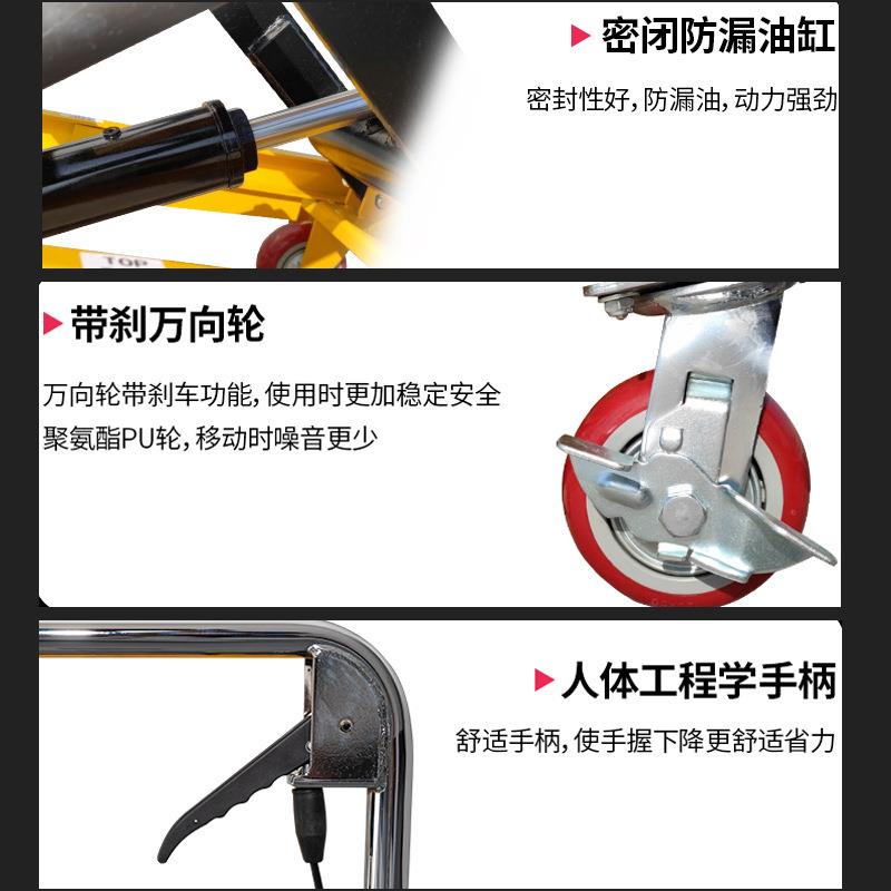 手动液压剪刀式升降平台车小型剪叉式推车脚踏平台车移动式升降机