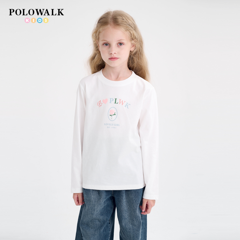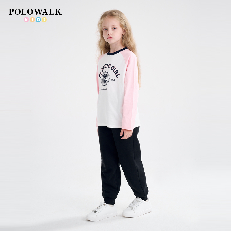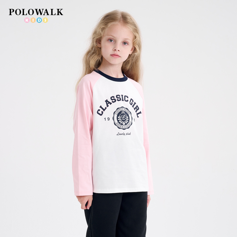 POLOWALK童装新品2025秋冬女童纯棉撞色薄款圆领长袖T恤打底衫 - POLOWALK童装旗舰店