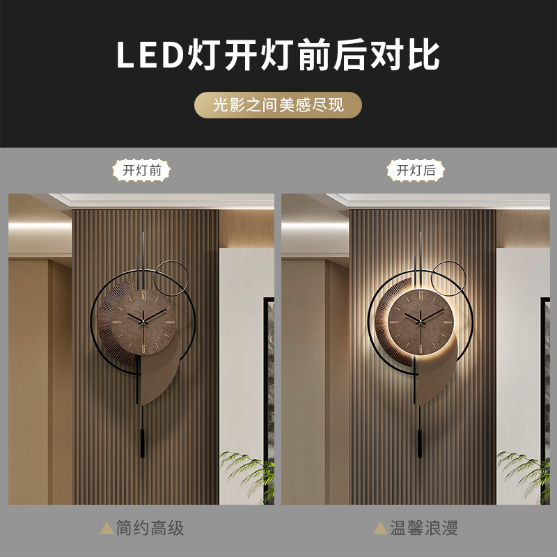 飞鸟集高级感时钟挂墙客厅挂表2025新款背景墙木格栅装饰钟表挂钟