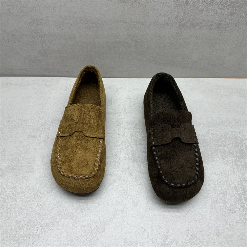 断码处理2025冬季新款女鞋舒适百搭平底加绒保暖一脚蹬懒人豆豆鞋 - 情未草品牌折扣鞋坊