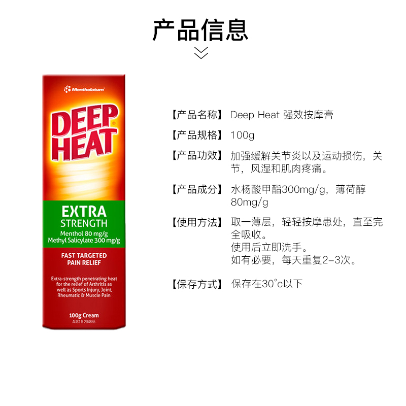 Deep Heat澳洲进口热疗按摩止痛膏肌肉损伤关节炎老人风湿骨伤2盒 - TomLanePharmacy海外旗舰店
