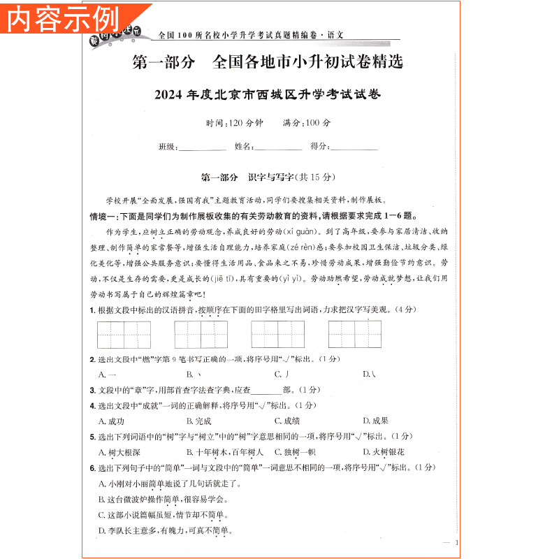 您的位置:他他商城  >   >  2025版黄冈小状元小升初语文真题精编卷小学升学考试六年级总复习资料专题集训真题模拟试卷子全国100所名校
