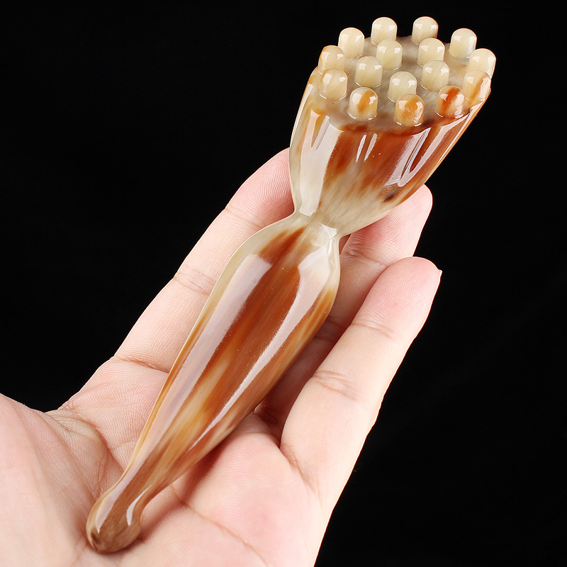 正宗牦牛角脸部经络按摩棒全身通用点穴皮脸刷白水牛角莲蓬头疗器 - 知梳世家牛角梳
