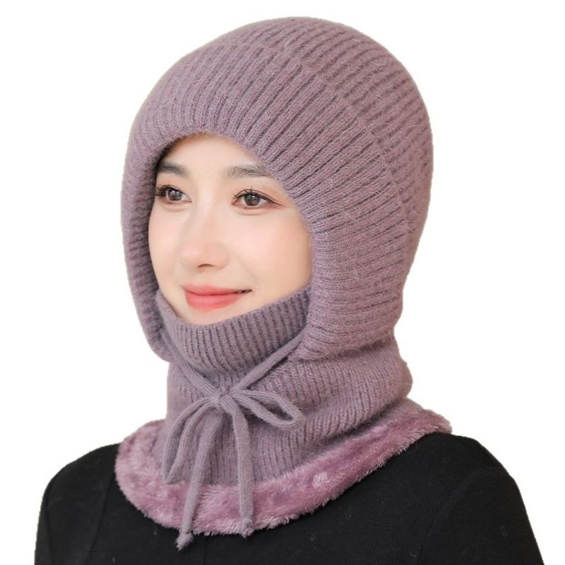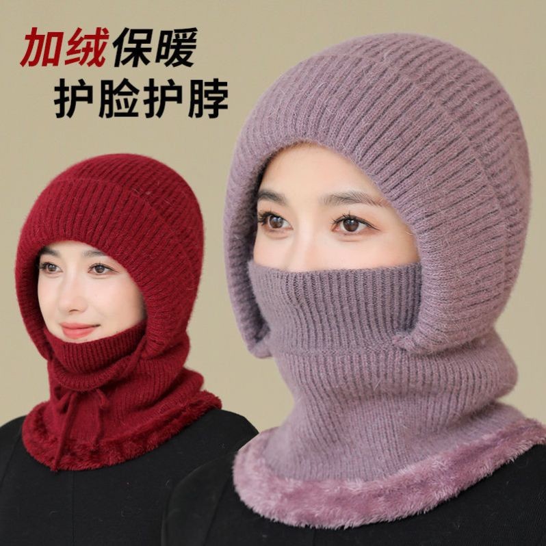 2025秋冬新款针织帽女加绒加厚帽子围脖一体帽防风保暖骑车风雪帽 - 夜会美内衣坊