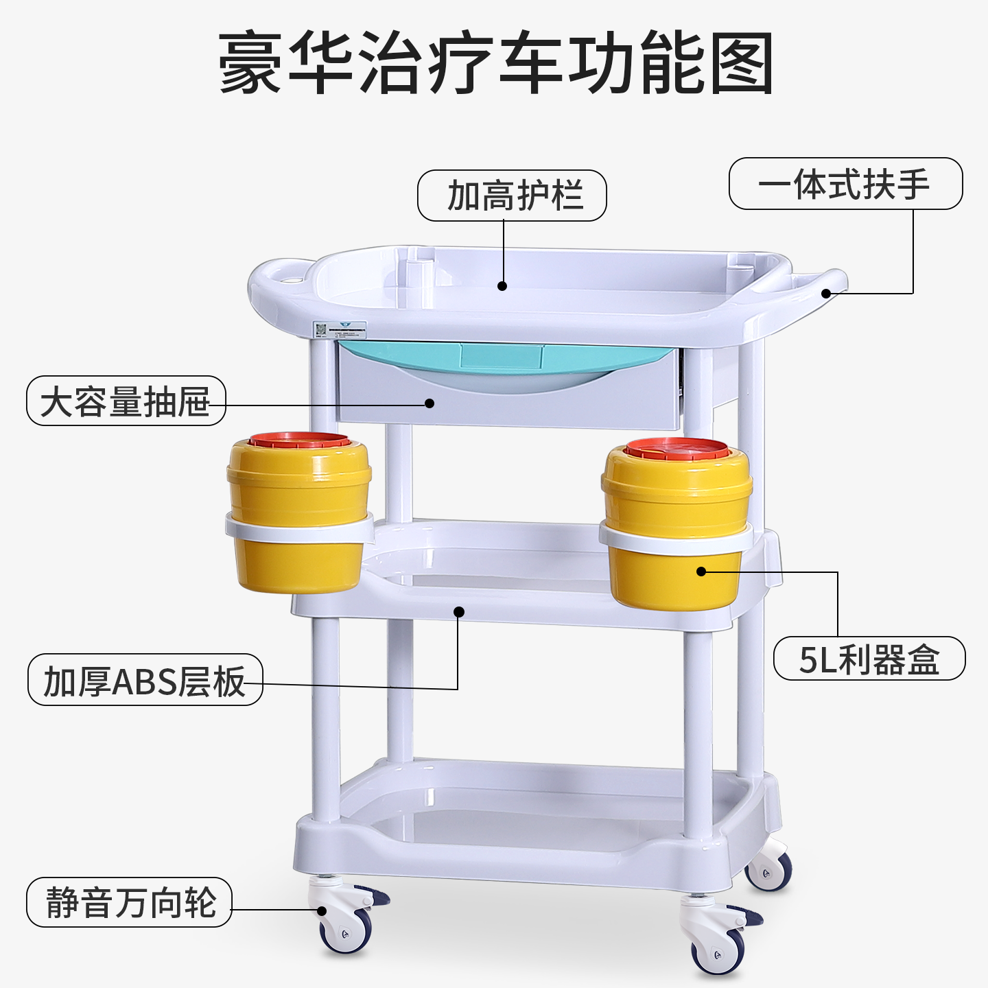 不锈钢医用小推车治疗车abs送药车多功能器械台护理车医院手推车