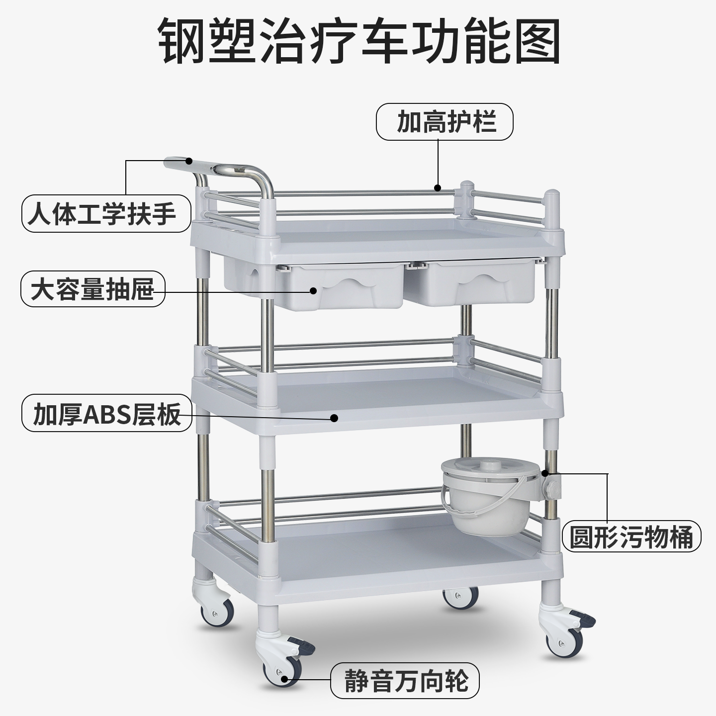 不锈钢医用小推车治疗车abs送药车多功能器械台护理车医院手推车 - 康普推车工厂店