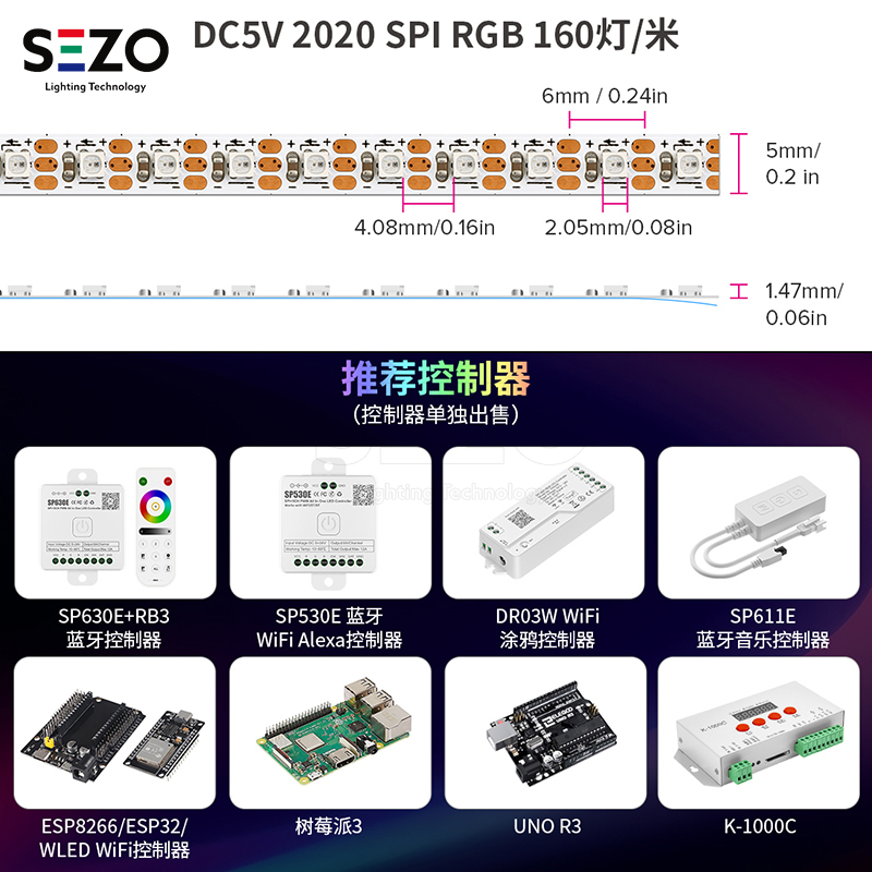 您的位置:他他商城  >   >  幻彩窄板宽5MM单点单控全彩led灯条160灯2020贴片可编程DC5V灯带