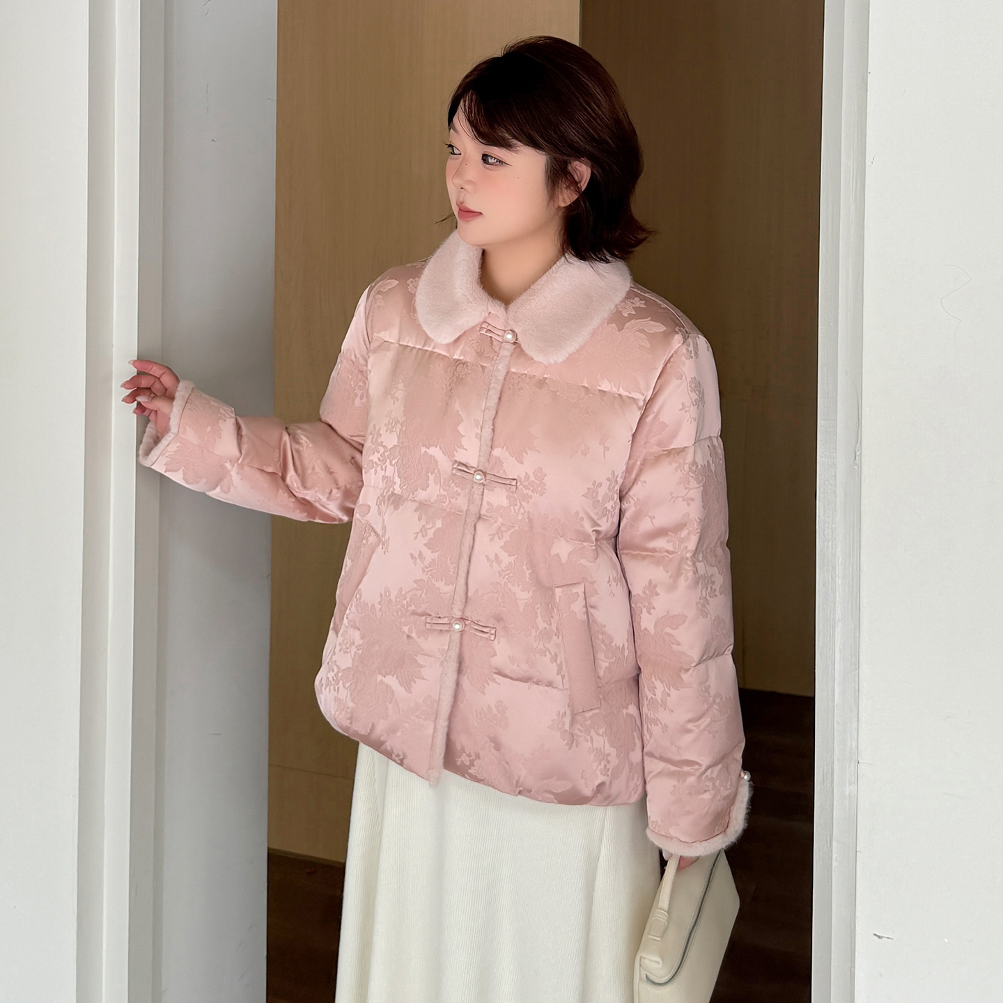 您的位置:他他商城  >   >  2025冬季新款大码女装胖MM新中式国风90白鸭绒羽绒服保暖外套显瘦