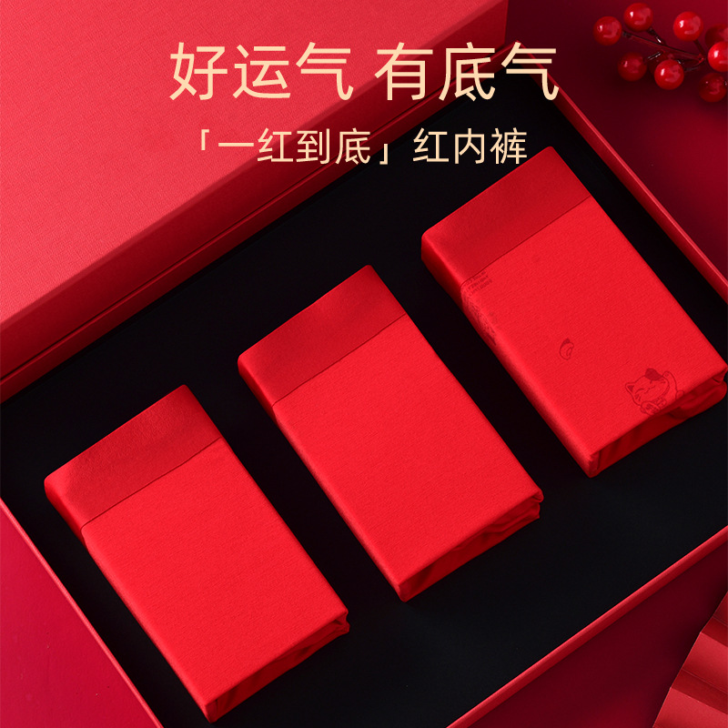 内裤男士红色喜庆结婚礼盒无痕平角裤男士本命年贴身内衣 - 山顶洞人R